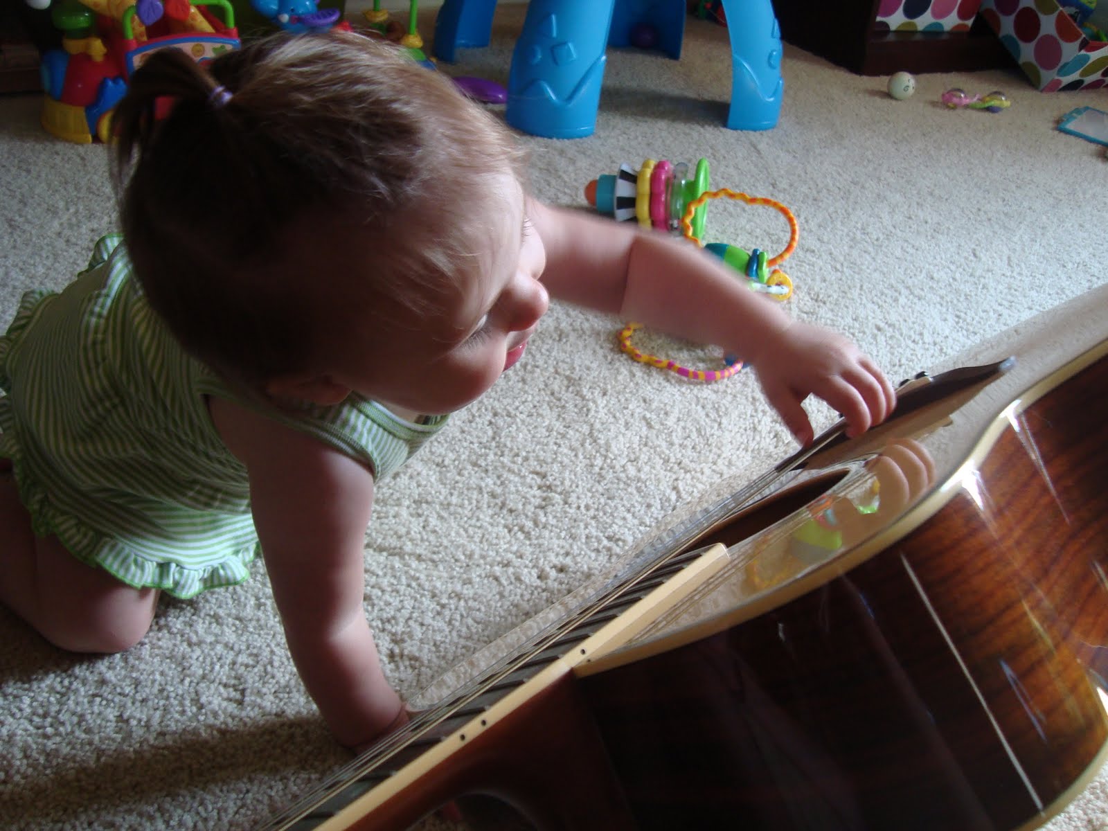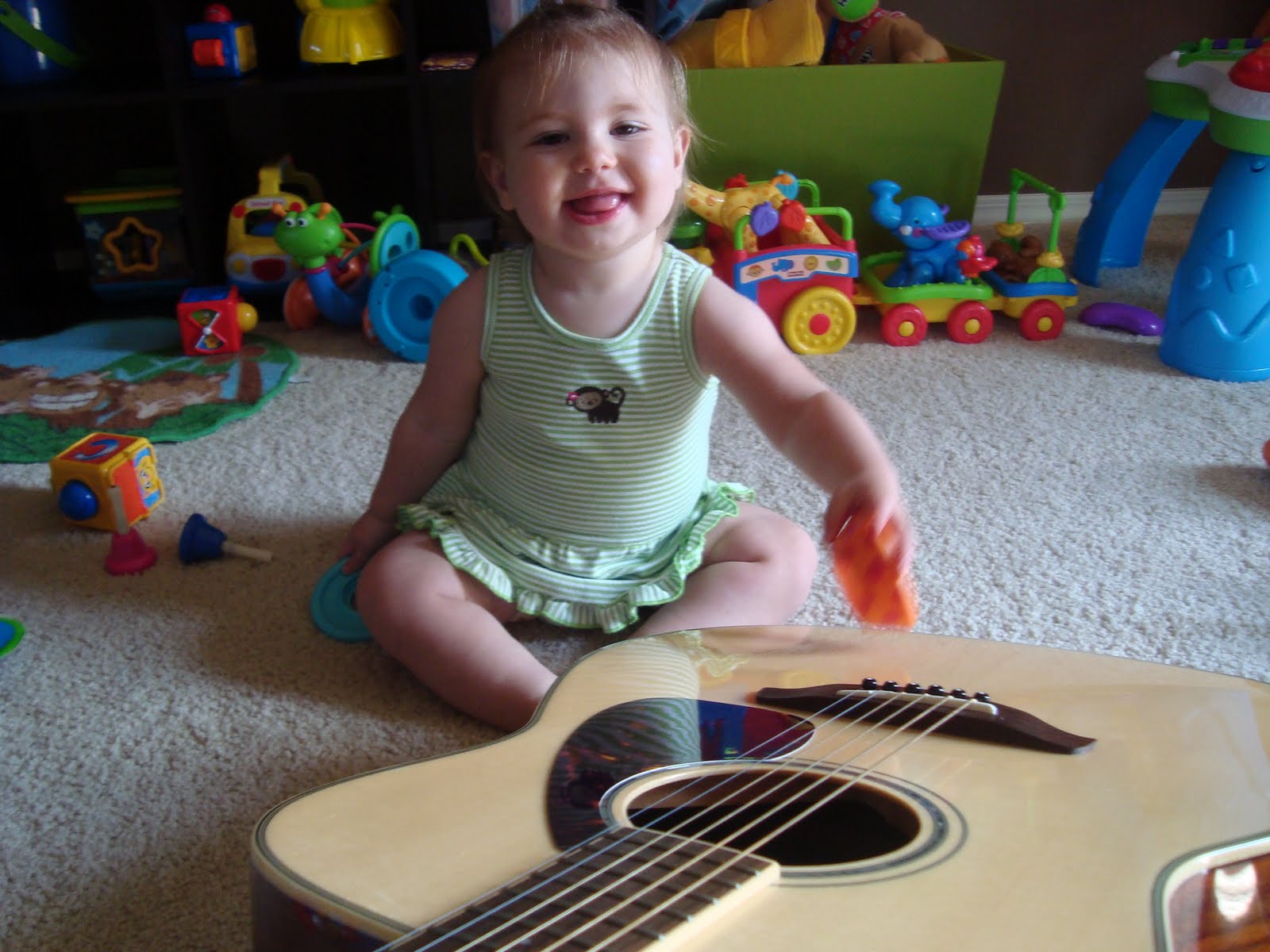 Well, it is now, and she LOVES it! We dance and sing and I am teaching her some extra sign language to go along with some of her songs. Some days she is actively engaged in strumming the guitar, or tapping the drum, and some days she just hangs out and plays to the side while I or Michael play for her. Either way it is a BLAST!