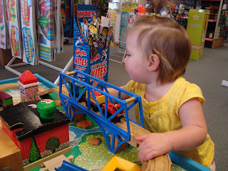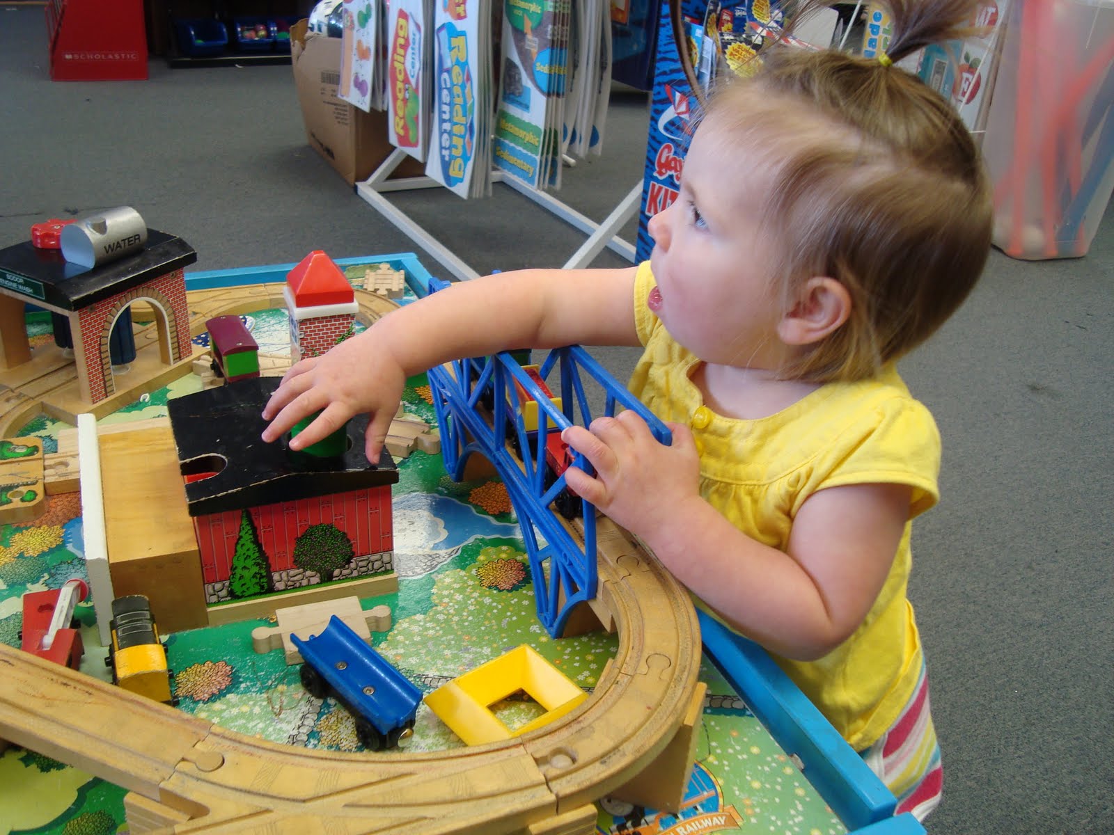 When I was a Little girl I had the most awesome Brio Train Set that my mom and dad got for me. It really was the coolest thing ever… I haven’t quite decided if I will be getting one for Farrah yet or not, but I do know several places that have some we can play with!
