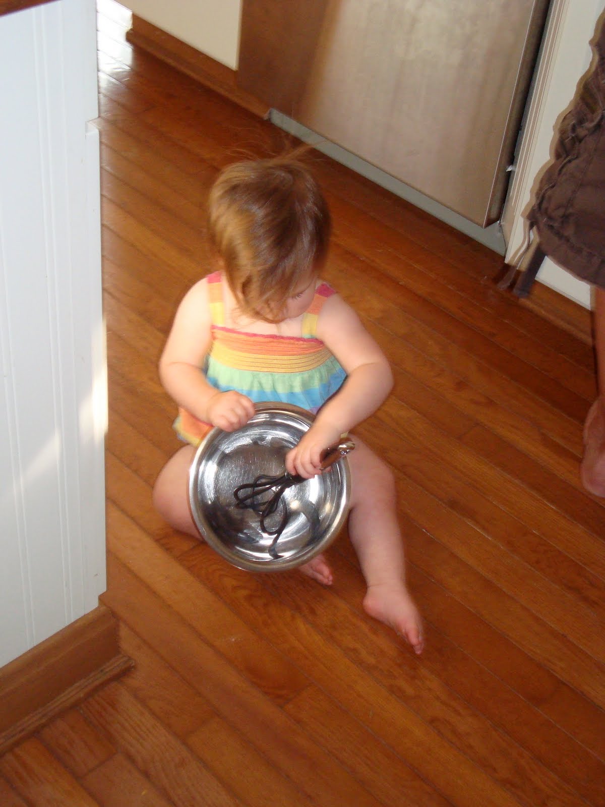 Here we are helping Daddy cook breakfast, you can be sure that this particular activity turned mommy into a raving kitchen psycho and bought a lot of “Farrah-size” kitchen utensils. Now we can make COOKIES!