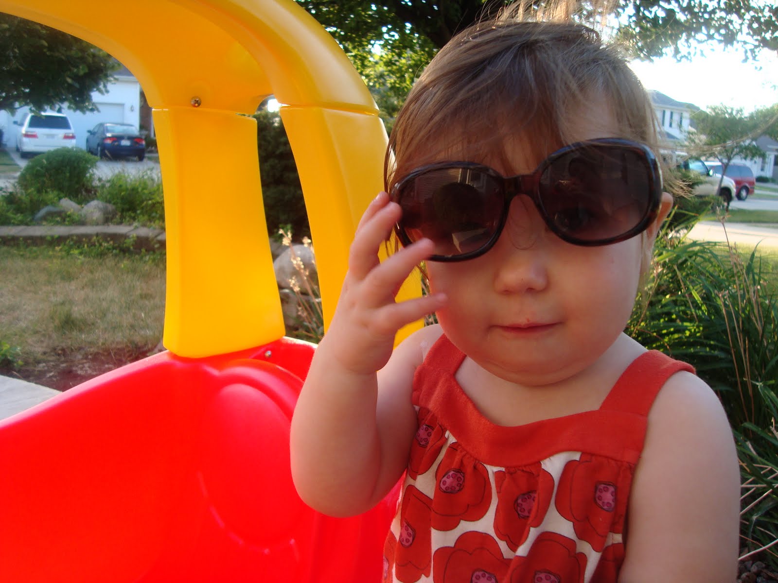 Our nightly adventure… around the block in my snazzy wheels. Be sure to protect your eyes from the sun!