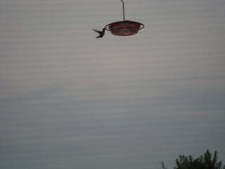 Our most recent is a Hummingbird Feeder. Wouldn’t you know, Farrah was the first to spot a hummingbird. This picture is not of the first, but rather the THIRD bird to greet us in our backyard.