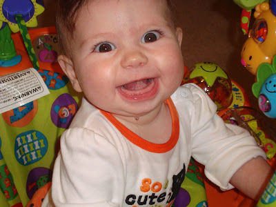 4. Sitting Alone! WE have just began to sit by ourselves… granted we still take some nose dives or forget what we are doing and just fall over to the side, but we are pretty much sitting with no help from mom and dad! We are still being lazy on the rolling over thing though…