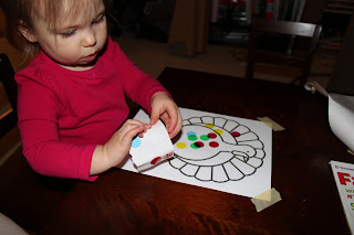 Farrah LOVES doing the sticker activity, and so this time, we played with a Turkey! She also has the coordination and fine motor skill to take the stickers off by herself and so it is a great way to get some downtime as she does this 🙂 I can actually walk away for just a moment!